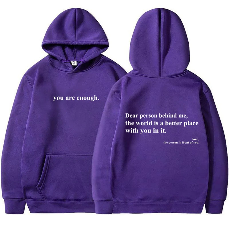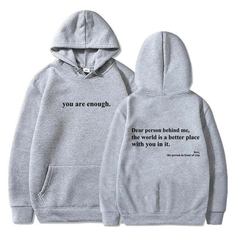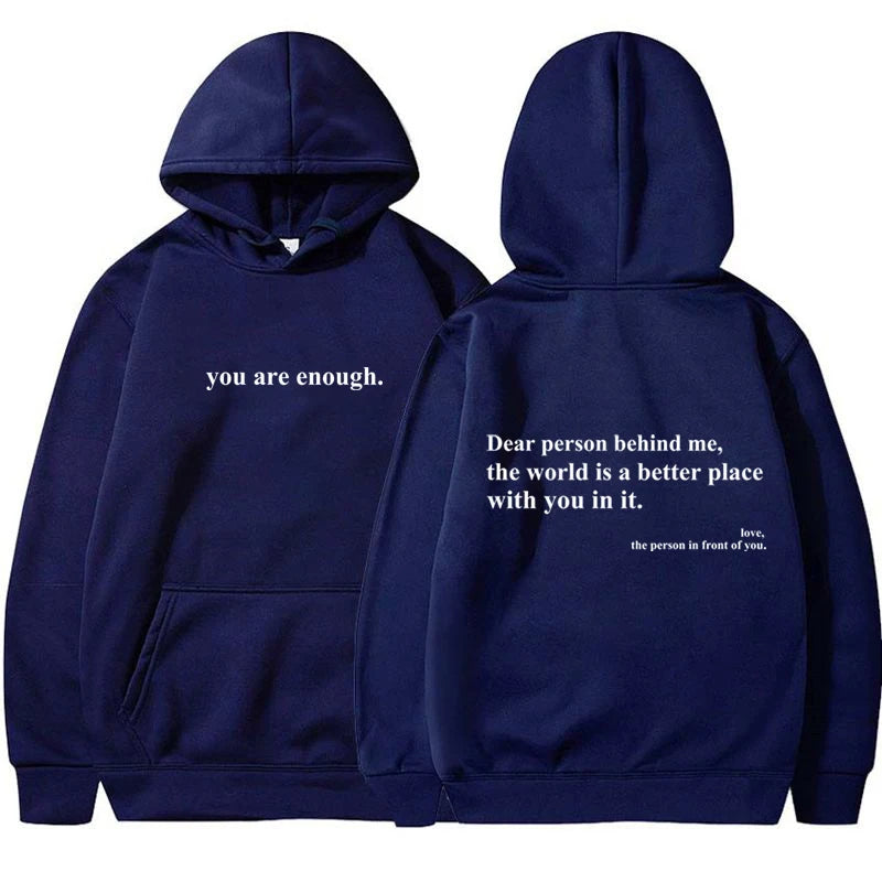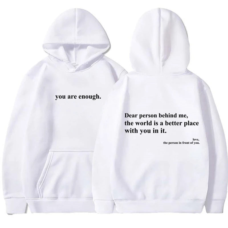 This hoodie isn't just clothing — it's a quiet reminder that every life has value. In a world that often moves too fast to notice, it's a simple way to say, "You matter". Because sometimes, it's not grand gestures that touch hearts, but the small, thoughtful messages that speak the loudest.